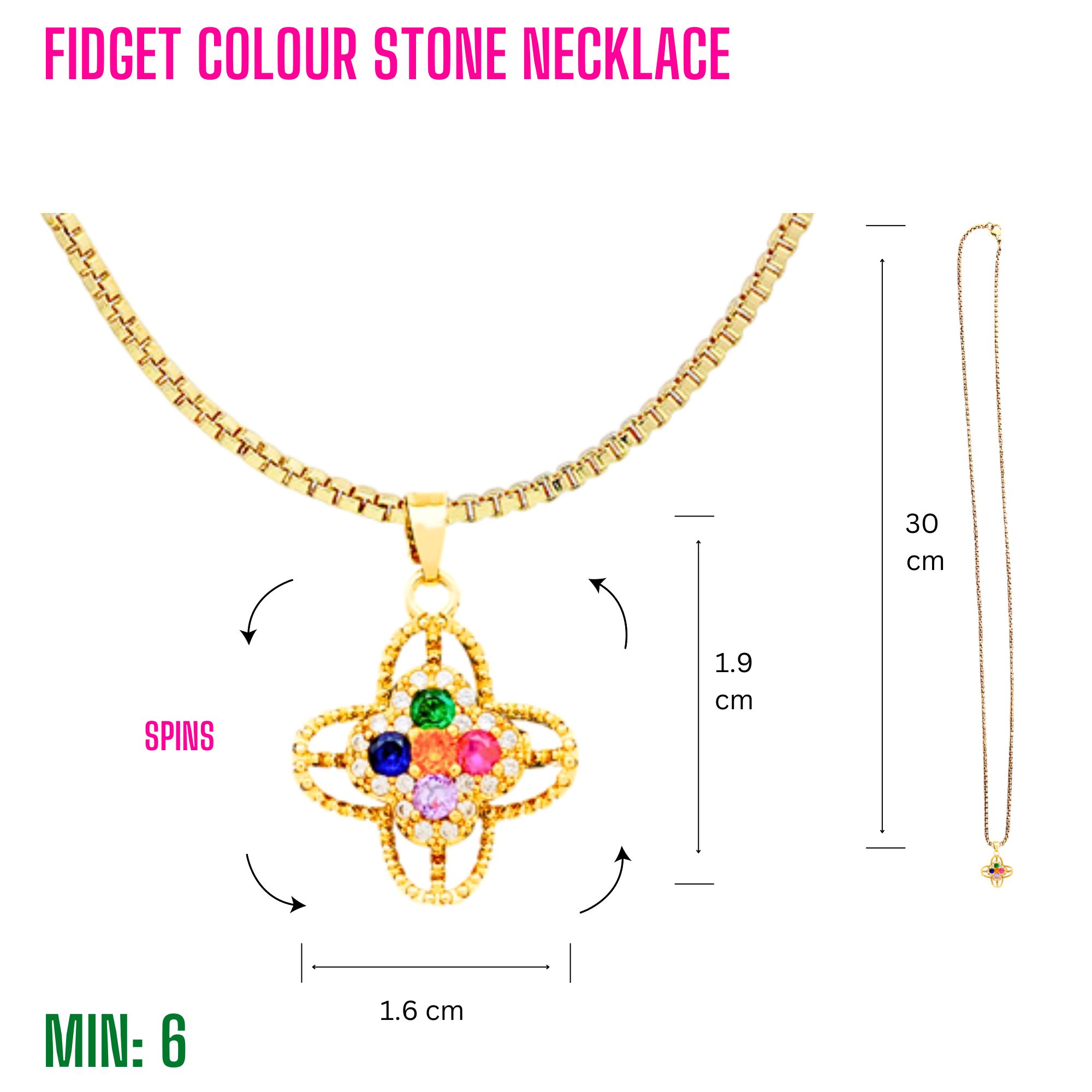 MI-FIDGETNECKLACE6 - Fidget Colour Stone Necklace