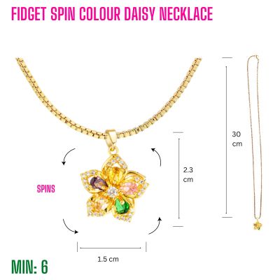 MI-FIDGETNECKLACE8 - Fidget Spin Colour Daisy Necklace