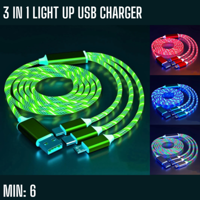 MI-USB - 3 IN 1 LIGHT UP USB CHARGER, FLASHING AND FLOW WHEN CHARGING