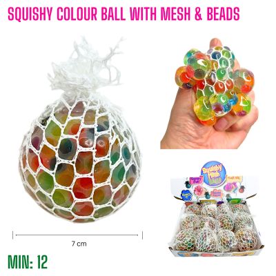TO-SQUISHMESH1 - Squishy Colour Ball With Mesh & Beads